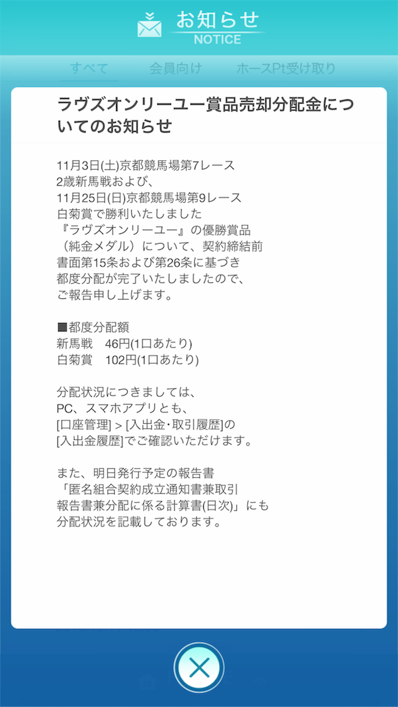 ラヴズオンリーユー 配当 | ラヴズオンリーユー配当金メダル分 Umajoの一口馬主ダイアリー